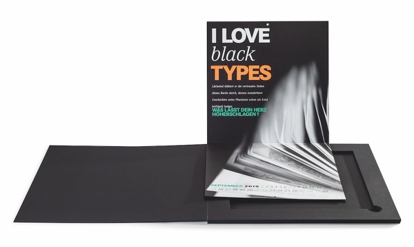„Italian Binding“ wurde bereits bei Kundenmagazinen, Geschäftsberichten und Eigenwerbungen in unterschiedlichen Formaten für namhafte Markenartikler und Konzerne produziert. Mit „THE aesthetic OF BLACK“ wurde erstmals ein Kalender mit der Layflatbindung »Italian Binding« gefertigt. Das Überformat und die ganzjährige Hängung des Kalenders sind ein weiterer Beweis für die Robustheit bei all der Eleganz der speziellen Layfletbindung.