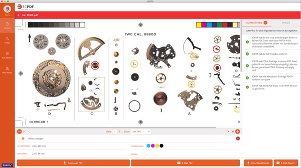 In die Entwicklung von 3CPDF sind mehr als 20 Jahre Praxis-Know-how mit dem Preflight und der Korrektur von bislang etwa 50 Millionen PDF-Dateien eingeflossen. Die App kennt und berücksichtigt sämtliche Fehler, die heute in PDF-Druckdaten versteckt sein können, und schließt damit Überraschungen beim Druck zuverlässig aus. 3CPDF wird permanent aktualisiert. Deshalb berücksichtigt die App künftig auch Fehler, die in neuen Software-Releases für unter anderem Design und Layout, Bildbearbeitung und Farbmanagement stecken können – also Fehler, die heute noch nicht bekannt sind.