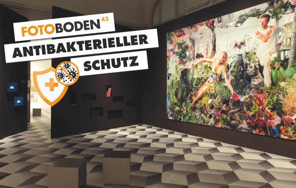 FOTOBODEN™ in Objektqualität FB43 gibt es ab sofort werksseitig ohne Mehrkosten mit der neuen Bacteria Shield+ Technologie: Optimal für den Einsatz im Gesundheitssektor. Auch perfekt im Museum und am POS.