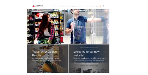 „5 Jahre nach dem letzten Relaunch haben wir bewusst unseren Schwerpunkt auf die Bedienbarkeit und Nutzerfreundlichkeit gelegt und möchten unseren Nutzern durch einen professionellen und klar strukturierten Auftritt die gewünschten Informationen über unsere Produkte rund um unsere Rasterwalzen, Druckzylinder und Dienstleistungen zur Verfügung stellen. So haben wir zum Beispiel unsere Produkte mit drehbaren 360 Grad Ansichten dargestellt oder durch verschiebbare Regler in der Ansicht variierbare Gravurbeispiele verwendet.“ äußert sich Thomas Reinking (Leiter Vertrieb und Marketing) zu dem Projekt. Neben der gestalterischen Umstrukturierung wurde die komplette Website inhaltlich überarbeitet und an die aktuellen technischen Anforderungen angepasst. So ist sie optimiert für die Nutzung auf diversen Endgeräten und für bessere Auffindbarkeit in Suchmaschinen. Die klare Struktur der neuen Website ist Teil der internationalen Wachstumsausrichtung von Zecher. Dazu Reinking: „Wir freuen uns sehr, dass wir auf der neuen Website den Nutzern nicht nur die Zecher Produkte vorstellen, sondern durch das Supermarkt-Thema auch die alltäglichen Berührungspunkte mit Endprodukten der Druckindustrie aufgreifen. Durch die neue, moderne Website wird viel besser wiedergegeben, wer wir sind und wofür Zecher steht: Kontinuierliche Verbesserung und Kundennähe. Nicht zuletzt deshalb gilt Zecher als Pionier der Rasterwalzen.“