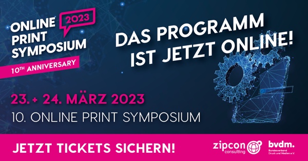 Mittwoch 08. Februar 2023 - Das 10. Online Print Symposium findet am 23. und 24. März 2023 im Science Congress Center Munich statt. Für den Celebration-Event haben sich die Veranstalter zipcon consulting GmbH und der Bundesverband Druck und Medien e.V. einige Highlights und Überraschungen einfallen lassen. Das Motto "Empowering the Future of Print" prägt das Programm des diesjährigen Online Print Symposiums: Die Stärkung und das Wachstum des Onlineprints.