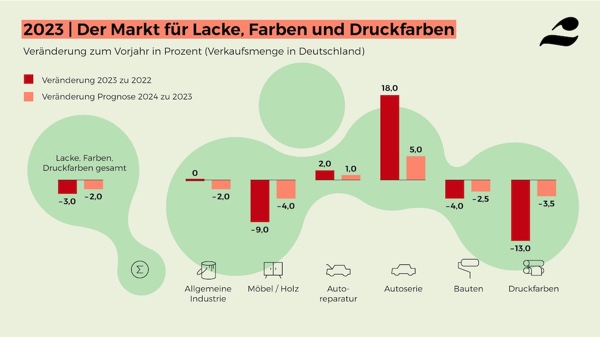 Das Geschäft für die Farbenbranche bleibt auch im Jahr 2024 schwierig – neben dem noch schwachen Bautenfarbenmarkt wird sich auch das Umfeld für die Industrielacke verschlechtern, allenfalls im zweiten Halbjahr könnte sich die konjunkturelle Lage in der Branche leicht aufhellen.