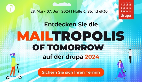 Donnerstag 25. April 2024 - Interessierte finden Quadient auf der drupa in Düsseldorf vom 28. Mai bis 7. Juni 2024 und können in die Mailtropolis of Tomorrow eintauchen; ein lebendiges Netzwerk von Postversand- und Kommunikationslösungen, in dem sich fortschrittliche Technologie, Effizienz und Konnektivität überschneiden! Von leistungsstarker Postverarbeitung für hohes Volumen bis zur Integration digitaler Kommunikation - Besucher:innen erleben, wie Quadient's Lösungen auf ihre Bedürfnisse zugeschnitten werden können. Jetzt Termin sichern